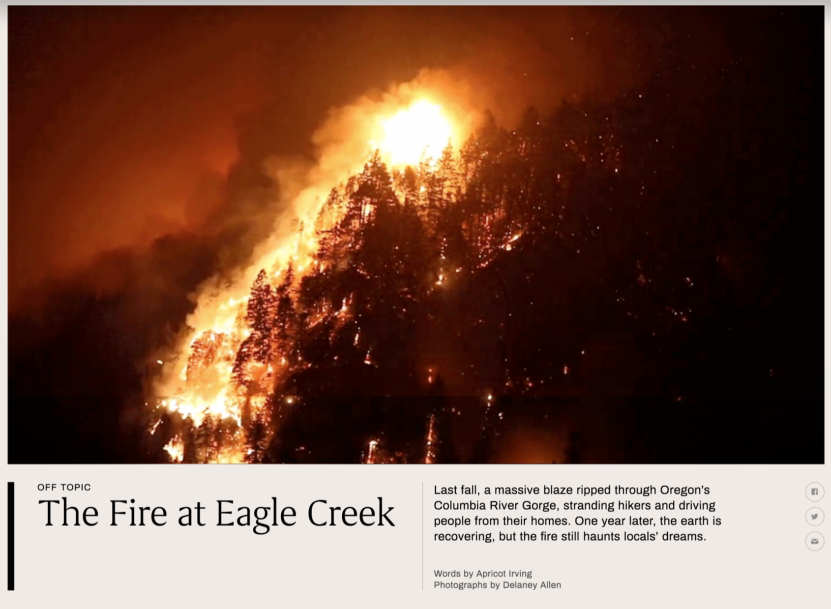 Just after 4:00 p.m. on Saturday, September 2, a teenager tossed lit fireworks down the cliff along the Eagle Creek Trail. The tinder-dry vegetation exploded. Those on the trail who could make it through the flames raced a mile down the steep terrain as the late-afternoon wind whipped erratic gusts around the canyon and up the high ridges, igniting the tree canopy.